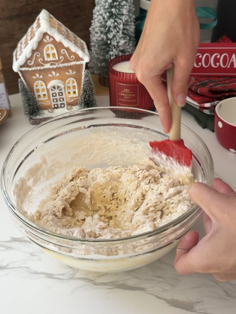 - Add the flour, baking soda, cream of tarter, ginger and cinnamon. Mix until fully combined.