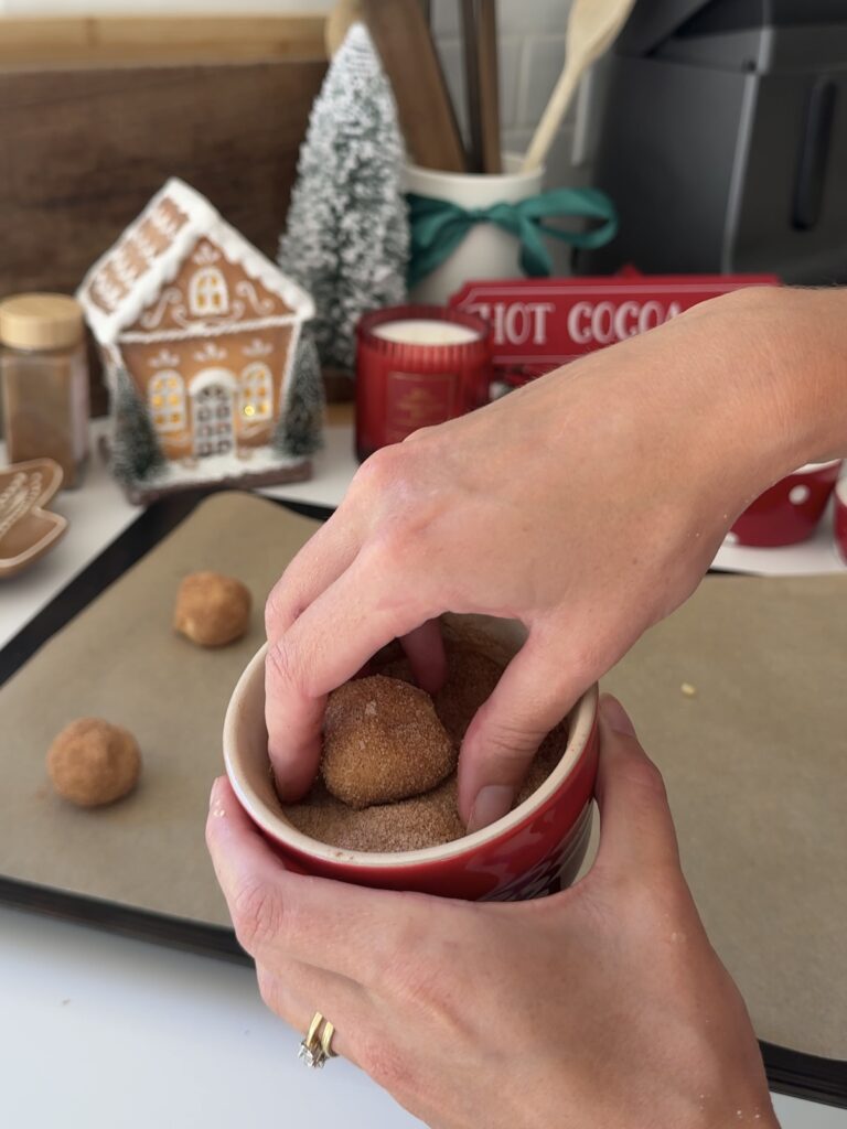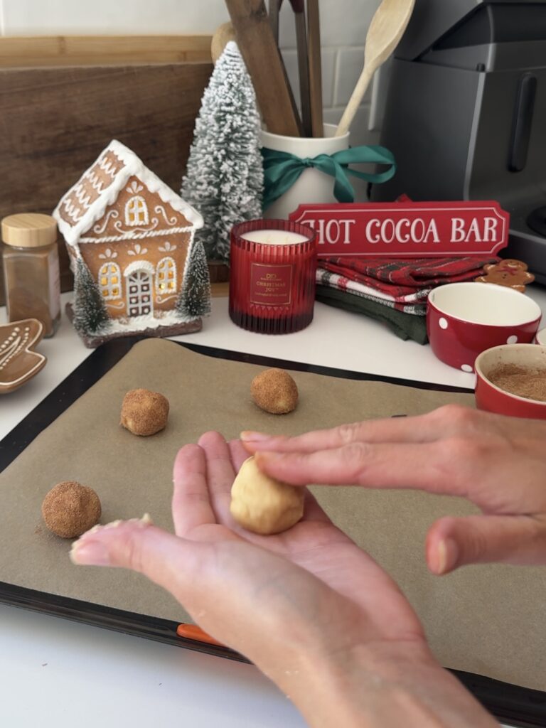The cinnamon-sugar coating is what gives snickerdoodles their signature look and taste. Be generous when rolling so every bite has that sweet, spicy crunch.