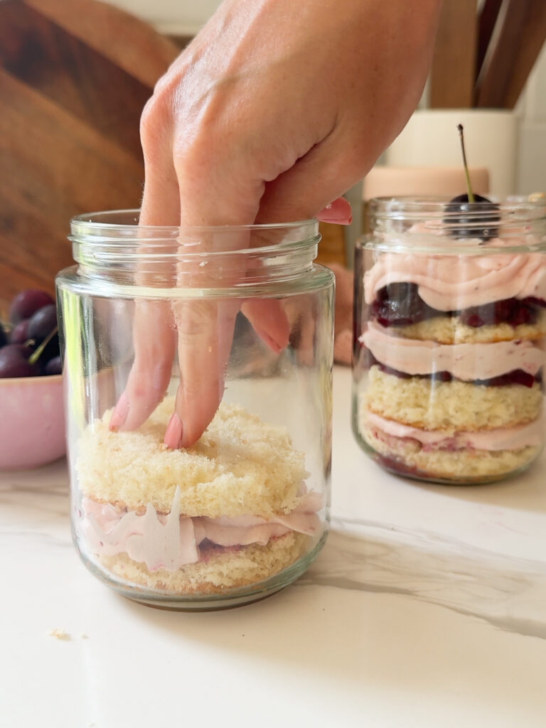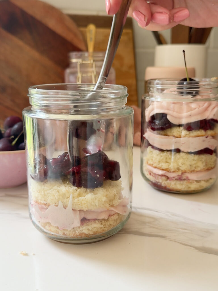Creating cherry cake jars is a mix of craft and creativity. It’s not just a cake, but a whole beautiful dessert that will wow anyone who you share it with (or not, that’s up to you)!