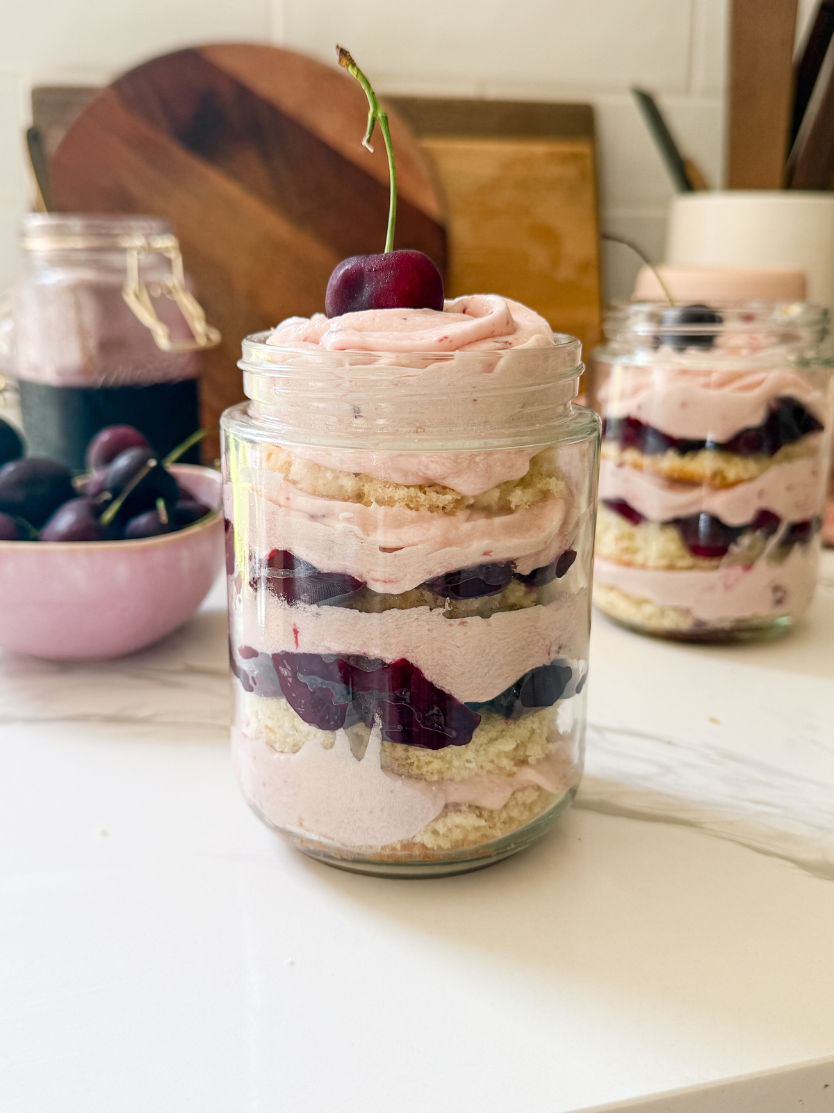 Creating cherry cake jars is a mix of craft and creativity. It’s not just a cake, but a whole beautiful dessert that will wow anyone who you share it with (or not, that’s up to you)!
