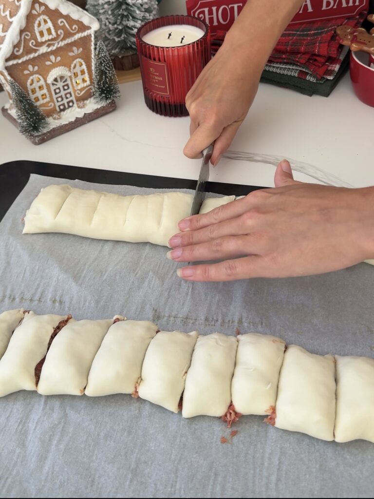 Once assembled, chill your rolls for 15โ20 minutes before baking. This helps the pastry hold its shape and gives you cleaner edges.