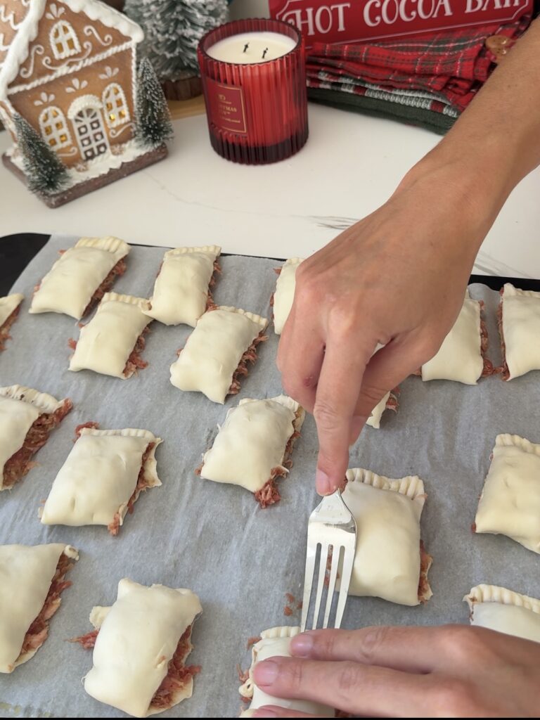 - Crimp the edges with a fork to seal the pastry edges. Refrigerate 20 minutes.