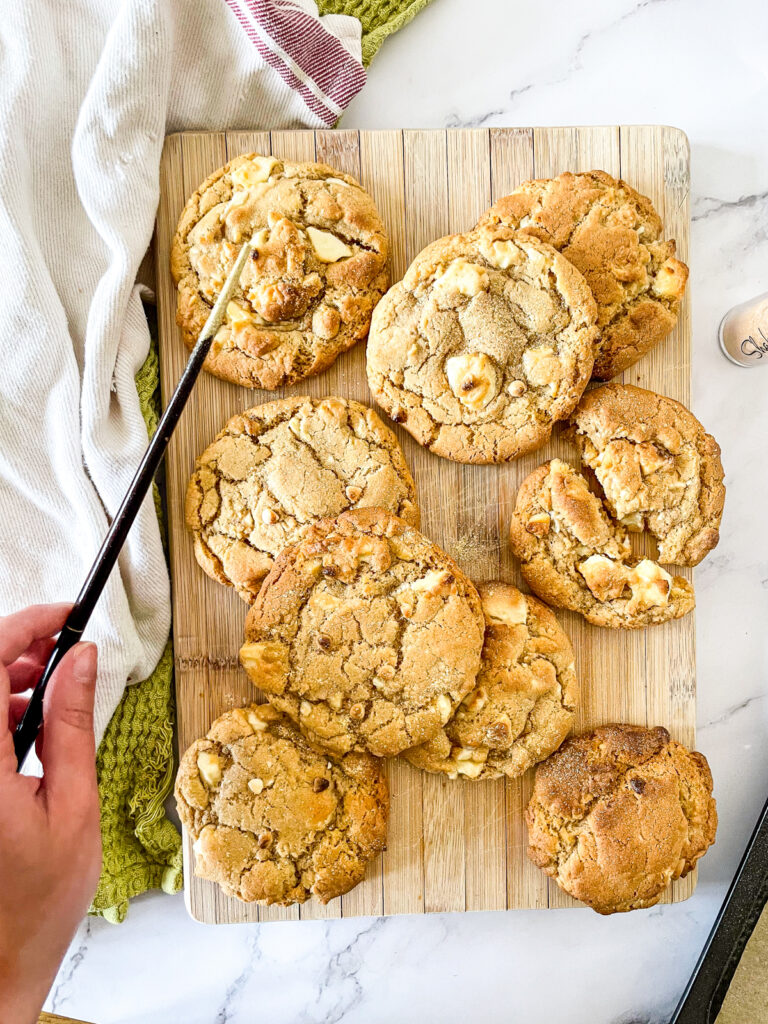 As is common on my site, this is a mega versatile recipe. You could absolutely sub the white chocolate but I feel this is the best paired with the butterscotch. If you can find butterscotch chips, they’ll be fabulous! Similarly, feel free to change how big they are to make more or fewer. If you do this, however, make sure to adjust the bake time up or down accordingly. This is a great cookie dough to make ahead and keep in the fridge or freezer (wrap air tight) until needed!